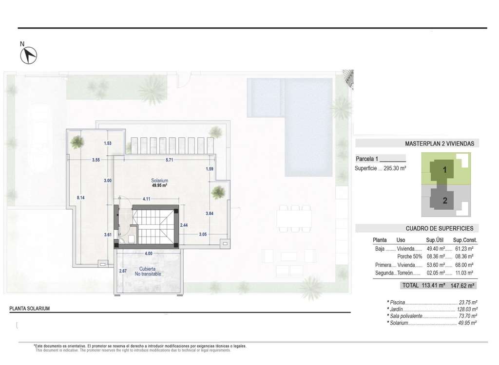 Modernas villas adosadas en Santa Rosalía Lake and Life Resort: un nuevo estándar de lujo mediterráneo Diseño contemporáneo inspirado en el Mediterráneo Descubra estas exclusivas villas adosadas situadas en el prestigioso Santa Rosalía Lake and Life Resort, un destino residencial único en la Costa Cálida. Inspiradas en la arquitectura mediterránea, estas villas combinan líneas limpias, luz natural y comodidad moderna para crear un entorno armonioso y elegante. Cada villa está diseñada para ofrecer un equilibrio perfecto entre lujo y relajación, lo que la hace ideal como residencia permanente, casa de vacaciones u oportunidad de inversión. Distribución espaciosa y acabados de alta gama Cada villa ofrece 220 m² de superficie habitable distribuidos en un sótano, dos plantas principales y un solárium en la azotea, situados en generosas parcelas de 295 m². Las viviendas cuentan con 4 dormitorios y 4 baños (3 en suite), lo que proporciona un amplio espacio para la familia y los invitados. La piscina privada con zona de jacuzzi, las amplias terrazas y el solárium en la azotea con cocina de verano y aseo invitan a disfrutar del excepcional clima de la región durante todo el año. Las especificaciones premium incluyen: Cocina totalmente equipada con electrodomésticos Bosch Baños con muebles, espejos, mamparas de ducha y calentadores de toallas Puerta de entrada blindada y puerta de acceso motorizada para vehículos Focos LED en todo el interior y el exterior Aire acondicionado por conductos (instalado en ambas plantas) Piscina privada con zona de jacuzzi 2 paneles solares fotovoltaicos para la eficiencia energética Cocina de verano en el jardín Planta subterránea con patio inglés para la luz natural y la ventilación Vida estilo resort en Santa Rosalía Santa Rosalía Lake and Life Resort es una comunidad privada y cerrada con seguridad las 24 horas, diseñada en torno a unas impresionantes 126 000 m² de zonas verdes. Los residentes disfrutan de senderos para caminar y montar en bicicleta, instalaciones deportivas, pistas de pádel y tenis, minigolf, jardines, parques para perros y zonas de ocio. La casa club y la pieza central del complejo, una impresionante laguna cristalina de 17 000 m² rodeada de playas de arena blanca y palmeras, ofrecen un auténtico estilo de vida inspirado en el Caribe. La laguna cuenta incluso con dos islas, una de ellas con su propio bar, y varios chiringuitos en la playa para comer de forma relajada. Ubicación privilegiada en la Costa Cálida La promoción goza de una ubicación céntrica dentro del complejo, cerca de la laguna y del club de playa. Se encuentra a menos de 4 km de la playa de Los Alcázares, a 15 minutos de Cartagena y a solo 22 km del aeropuerto internacional de Murcia. Los amantes del golf encontrarán varios campos de primera categoría a poca distancia en coche, mientras que los puertos deportivos, restaurantes y zonas comerciales locales completan la vibrante oferta de estilo de vida. Su exclusivo refugio mediterráneo le espera Experimente la combinación perfecta de lujo, comodidad y bienestar en el corazón de la Costa Cálida. Póngase en contacto con nosotros hoy mismo para concertar una visita y descubrir la villa de sus sueños en Santa Rosalía Lake and Life Resort.