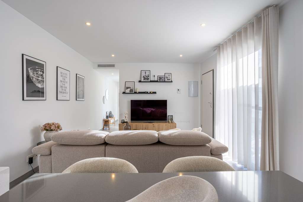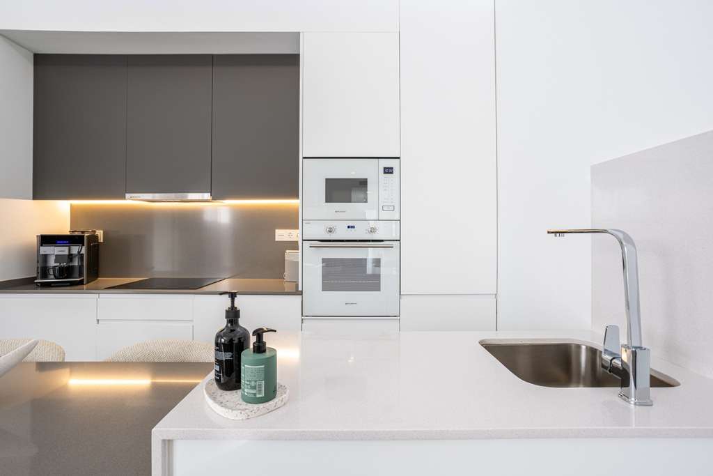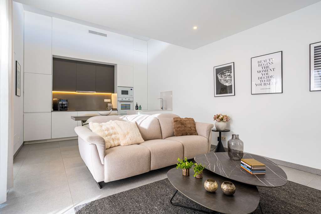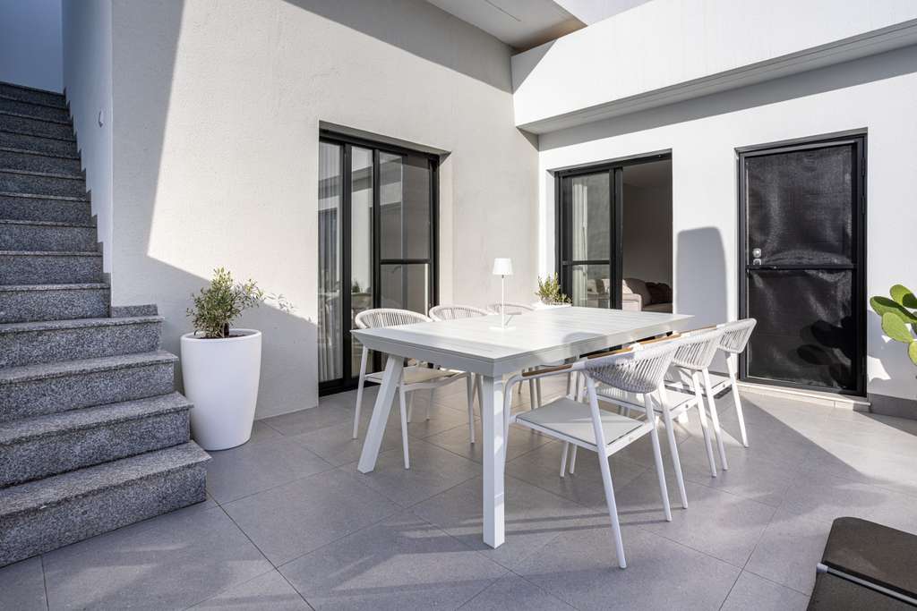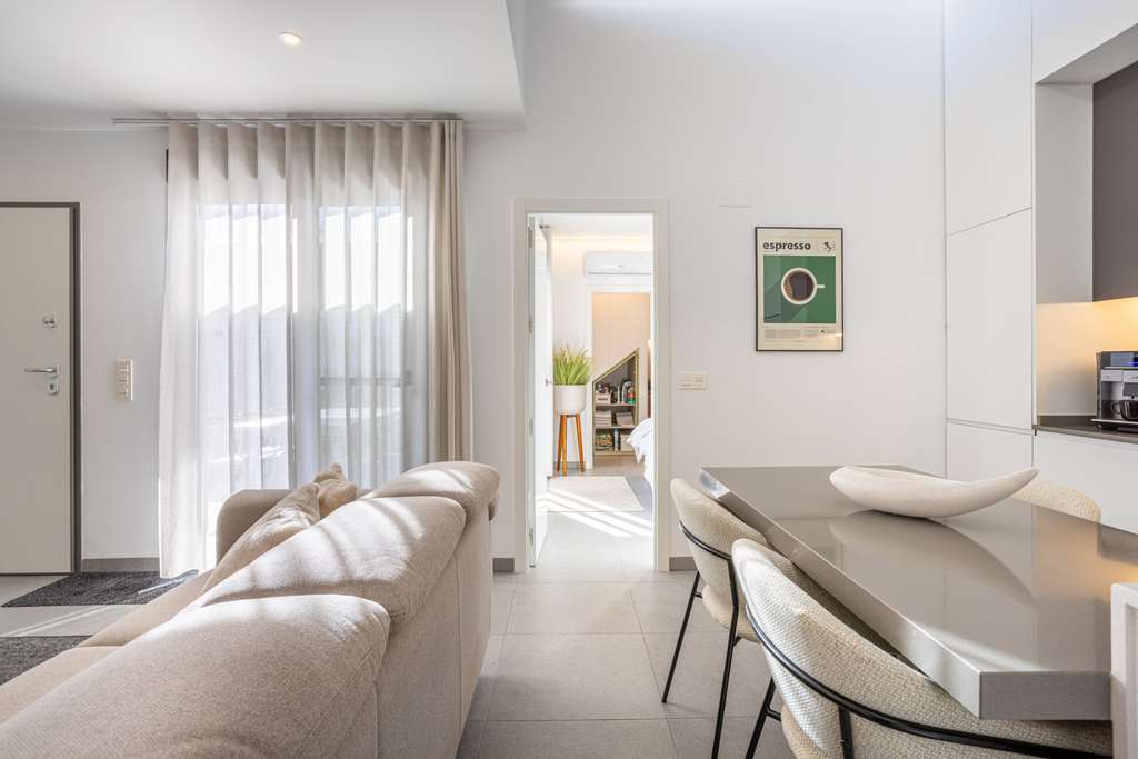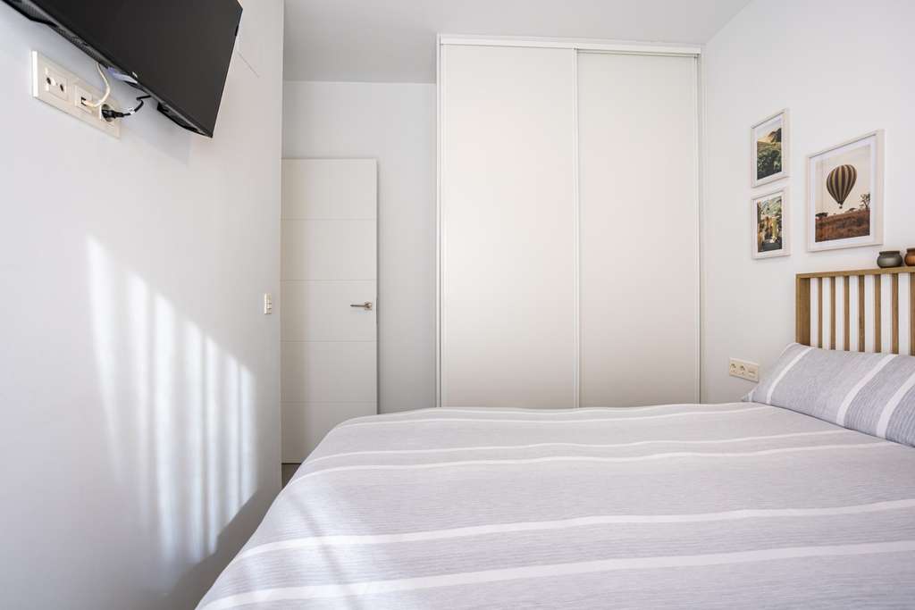 En el interior, la vivienda cuenta con tres amplios dormitorios, todos con armarios empotrados, y dos modernos baños, uno de ellos en suite con el dormitorio principal. También hay una zona de lavandería y un armario adicional, muy útil y discreto. La cocina americana se integra a la perfección con el salón-comedor, creando un espacio acogedor y funcional, ideal tanto para el día a día como para recibir invitados. La propiedad se encuentra en excelentes condiciones, lista para entrar a vivir, y se vende completamente amueblada, incluyendo electrodomésticos y aire acondicionado para mayor comodidad durante todo el año.