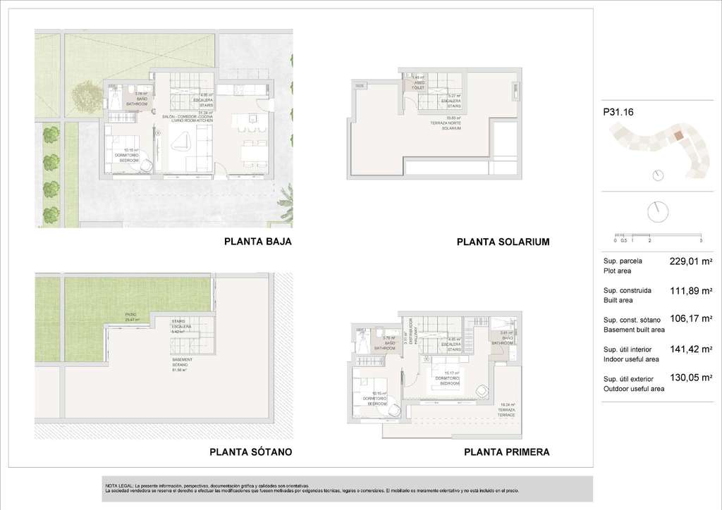 Cada villa cuenta con 3 dormitorios y 4 baños, distribuidos en dos plantas más el sótano y un solárium en la azotea. Destaca la amplia planta subterránea con luz natural y ventilación a través de un patio inglés, que ofrece la posibilidad de crear dormitorios adicionales, un home cinema, un gimnasio o una sala de juegos adaptados a su estilo de vida.