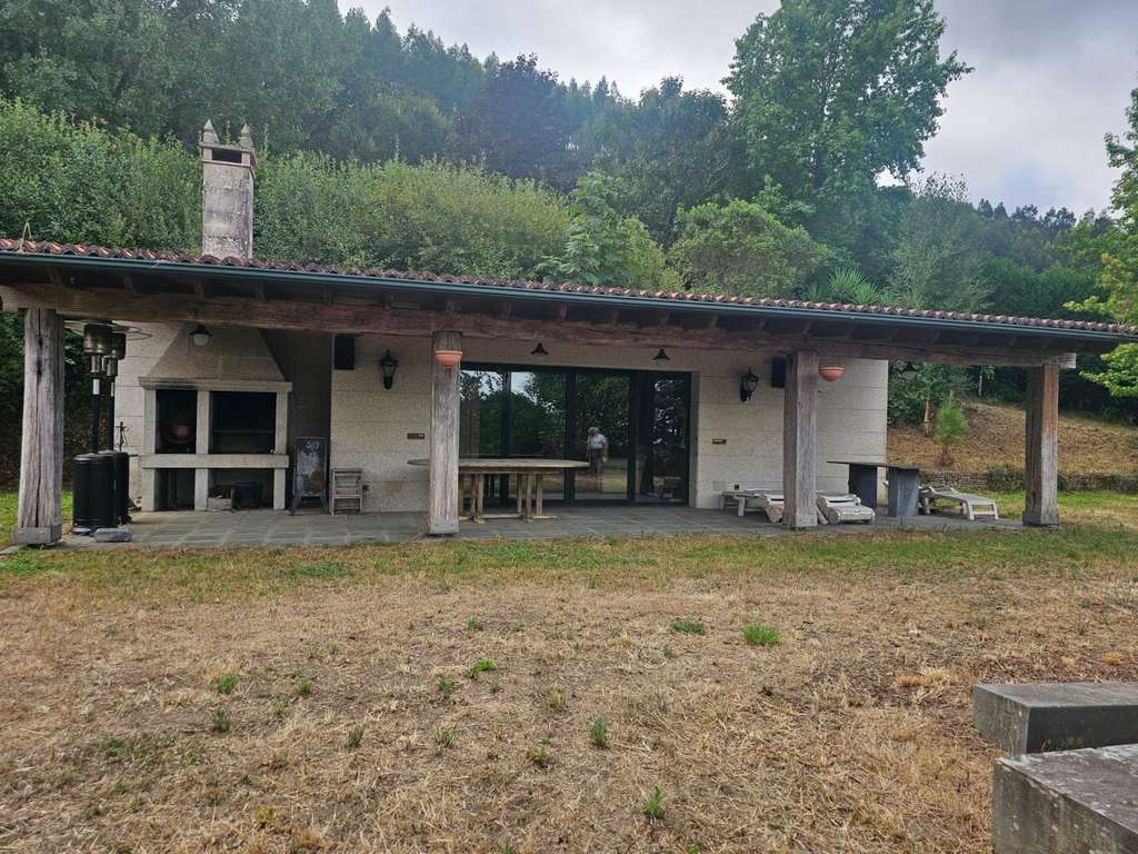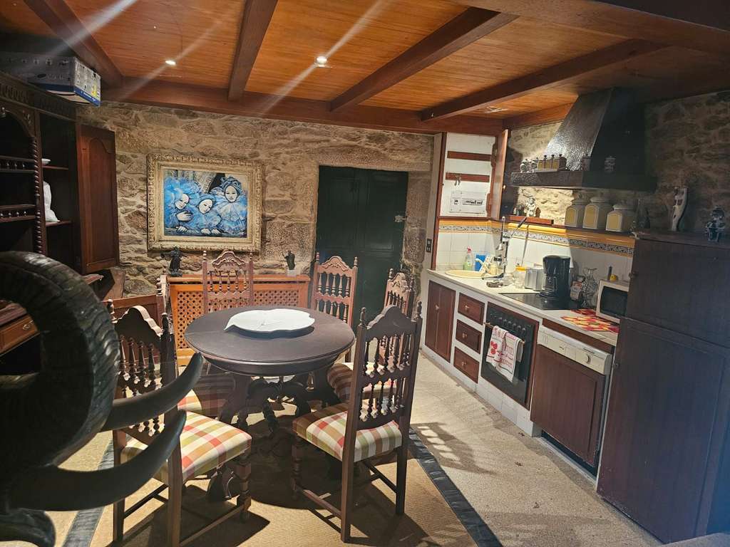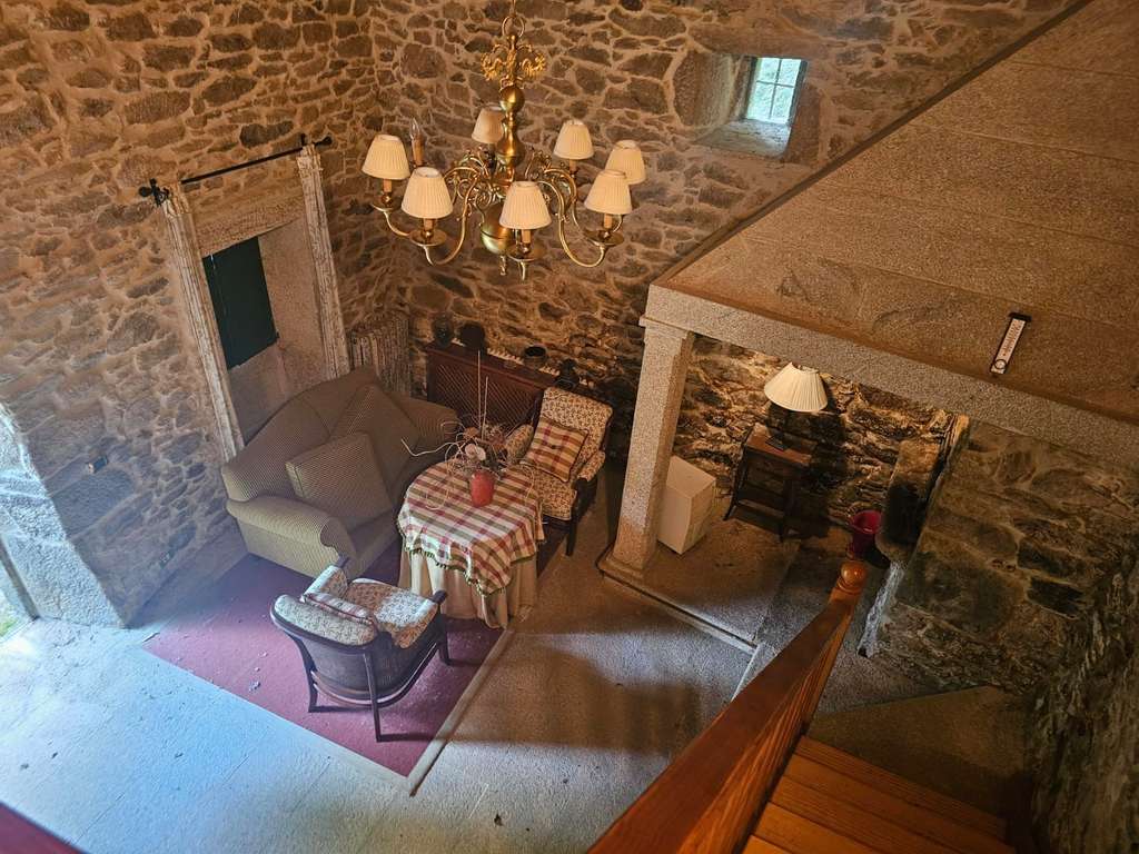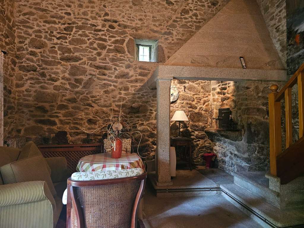 La otra casa, dentro de la misma parcela, está destinada a los invitados y ha sido dotada de todas las comodidades para que se pueda hacer una vida independiente: una gran habitación en la planta superior, dos baños, una sala de estar con chimenea, una cocina y un salón con lareira.