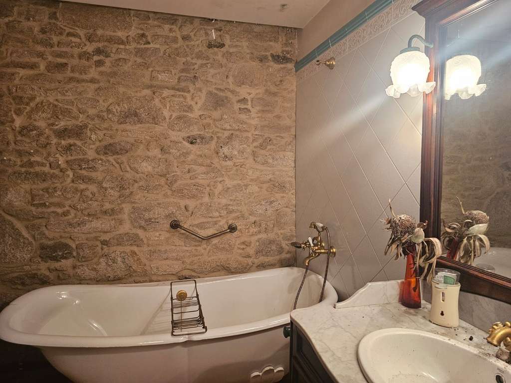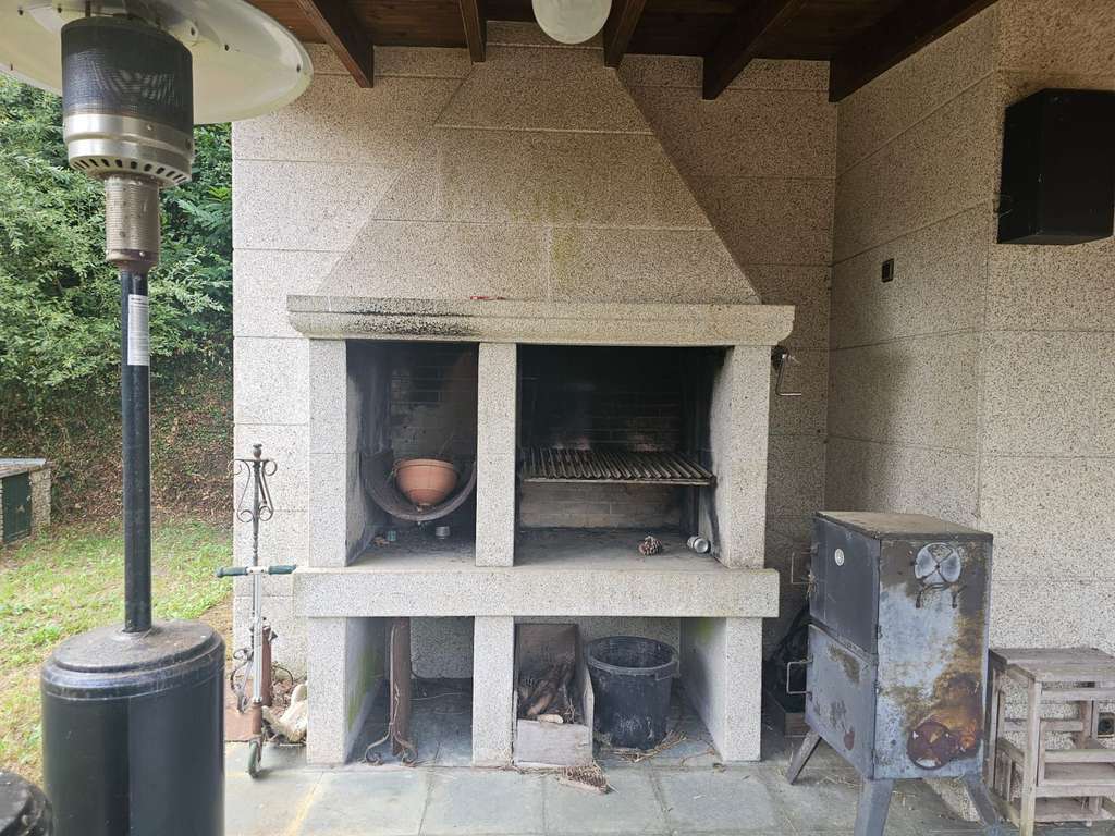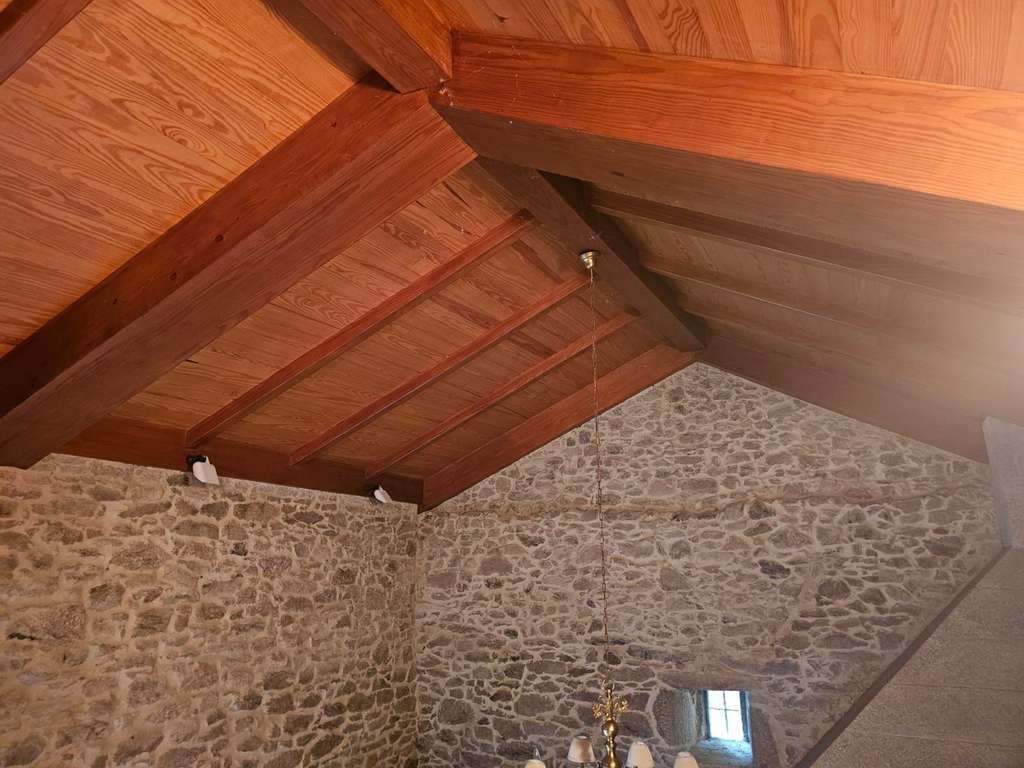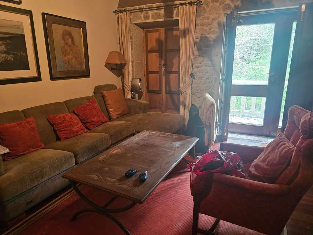 La otra casa, dentro de la misma parcela, está destinada a los invitados y ha sido dotada de todas las comodidades para que se pueda hacer una vida independiente: una gran habitación en la planta superior, dos baños, una sala de estar con chimenea, una cocina y un salón con lareira.