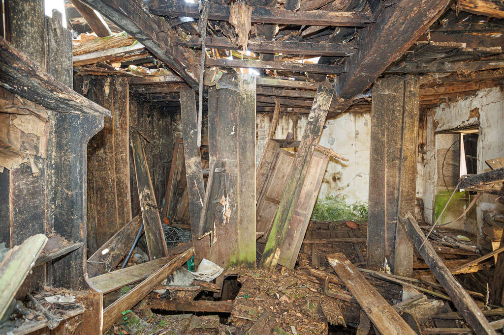 Las tres casas necesitan ser restauradas de forma integral. Algunas presentan mayor deterioro, conservando principalmente los muros exteriores, mientras que otras mantienen su estructura completa. Las edificaciones se distribuyen por la finca configurando rincones con encanto.