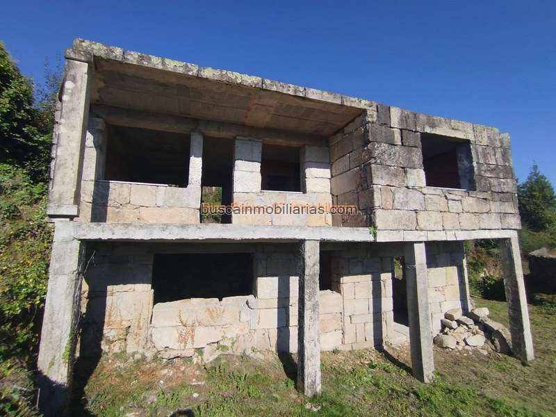 La vivienda necesita ser terminada y dispone de una fachada toda de piedra y placas de hormigón.