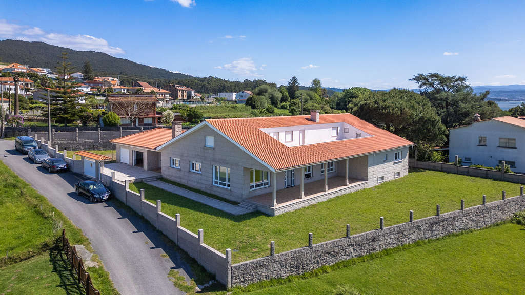 Este impresionante chalet se encuentra en Poio, Pontevedra, a solo 170 metros de la playa. Con 1.193 m² construidos sobre una parcela de 3.498 m², ofrece acabados de primera calidad y vistas privilegiadas a la Ría de Pontevedra. Es una construcción nueva que se vende a estrenar.