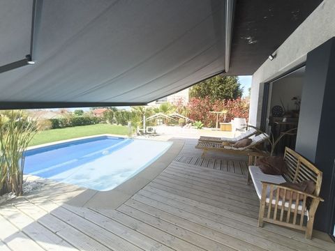 Espectacular salón bar con barbacoa, diseñado para el entretenimiento y con grandes ventanales que se abren por completo, integrando el interior con una magnífica terraza al borde de la piscina y sus hermosos jardines.