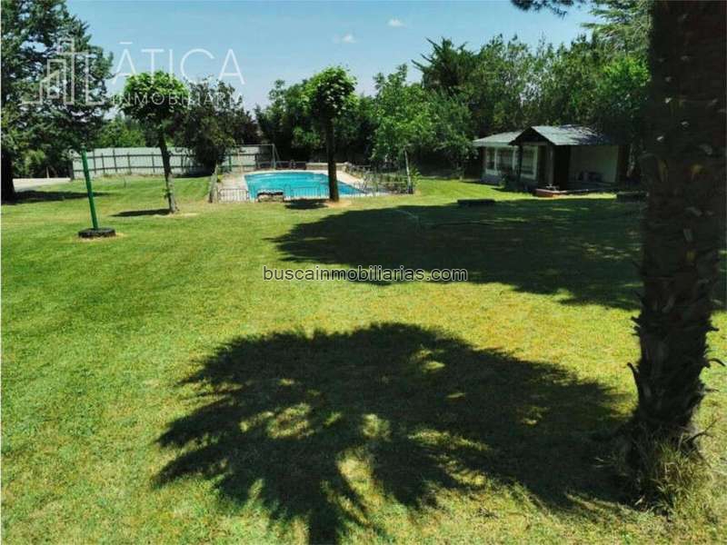 En el exterior tenemos piscina, barbacoa, una nave, almacén, cochera de 100 m2, gran jardín con grandes árboles y riego automático.