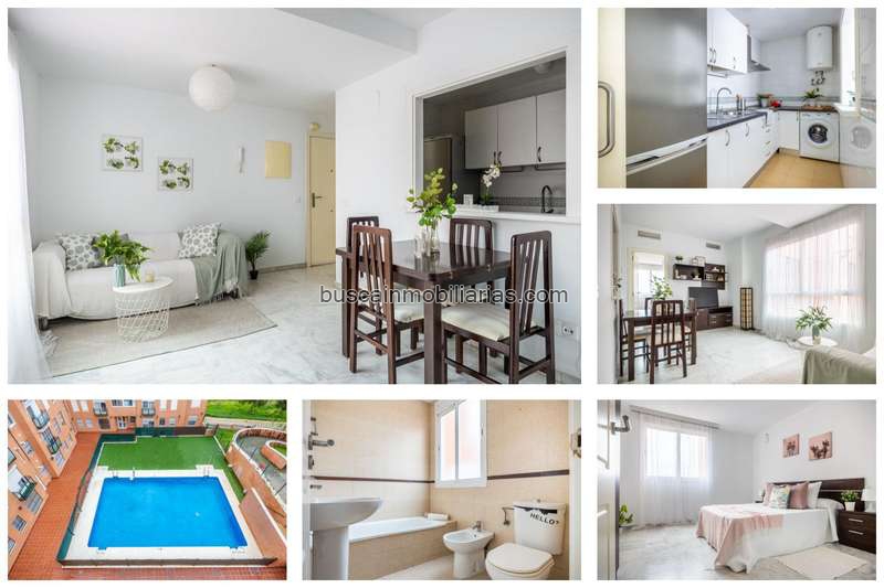 Se vende bonito apartamento de 59 metros construidos en urbanización con piscina y plaza de garaje. se compone de cocina independiente con ventana a salón comedor, amplia habitación con baño en suite. La vivienda se encuentra semi amueblada. Buenas calidades, mármol en suelos, ventanas de aluminio con climalit, puertas en madera lacada blanco, aire climatizado por conductos, armario empotrado en entradita, etc.