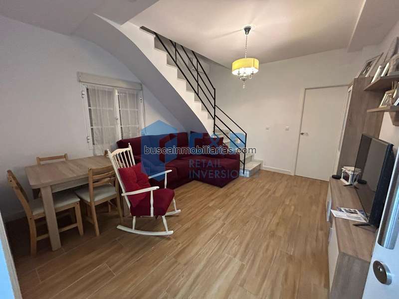 En la planta baja encontramos un salón acogedor, cocina amueblada, un dormitorio individual con cama doble, un patio techado con luz natural y un baño completo muy amplio con ducha a ras de suelo. Los suelos son de baldosa imitación a parquet y las ventanas de la planta baja cuentan con rejas de seguridad, aportando confort y tranquilidad.