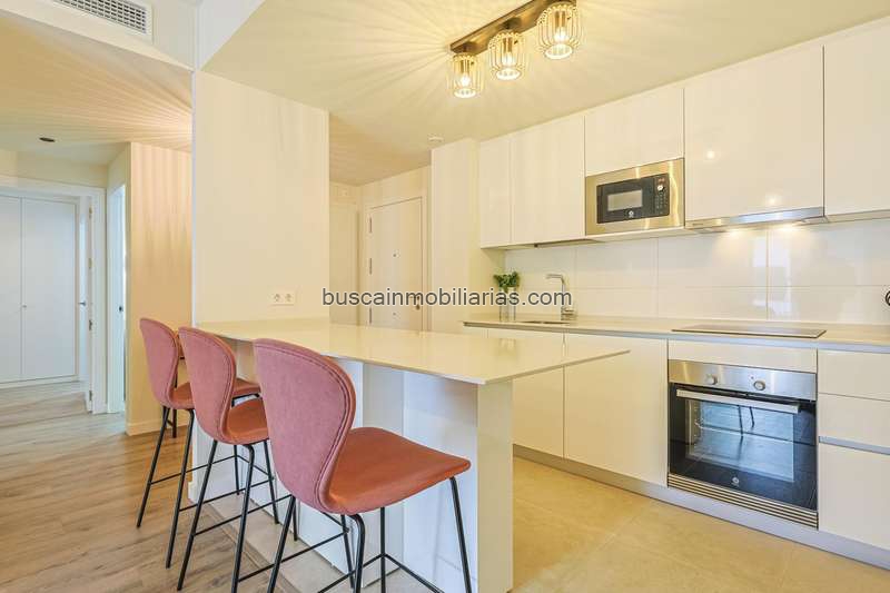 El piso se distribuye en un agradable hall de entrada, un amplio salón-comedor integrado con cocina de concepto abierto, moderno y totalmente equipado, con una fabulosa península y mobiliario ampliado respecto al diseño original. Desde el salón se accede a una acogedora terraza perfecta para disfrutar de momentos de descanso al aire libre.