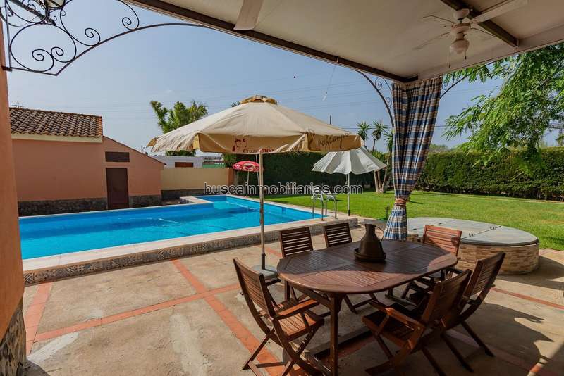 El exterior es lo que marca la diferencia de la vivienda, con una terraza junta a la piscina y un amplio jardín para su comodidad y tranquilidad. Además, también cuenta con un almacén junto a la piscina donde cabe la posibilidad de hacer una ampliación de estancias en el Chalet. Por último, proporciona todos los servicios al alcance de la mano al encontrándose a escasos kilómetros de centros comerciales, polígonos industriales y de Utrera