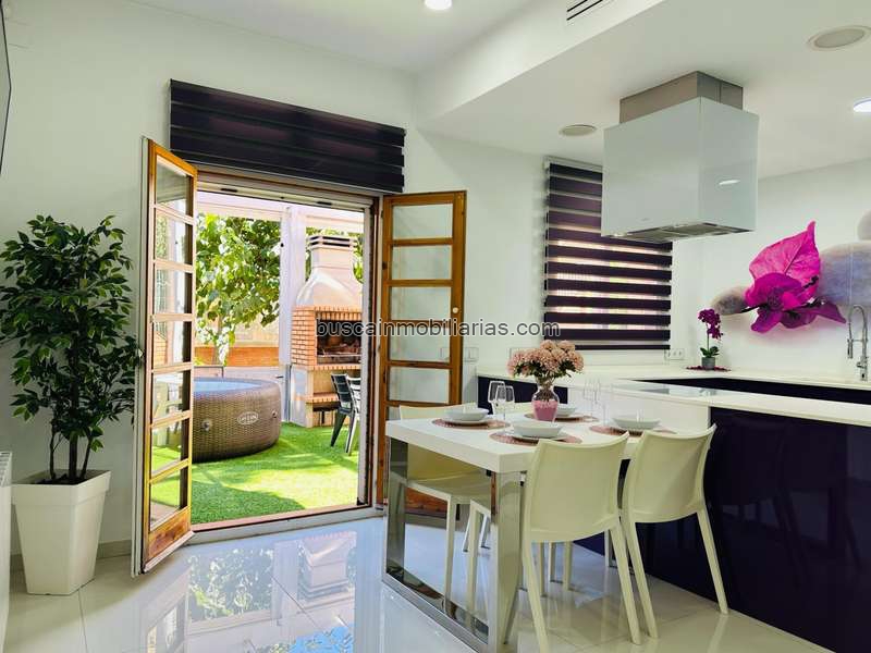 La casa se distribuye en varias plantas. Planta baja destinada a almacén, planta primera donde se encuentra la cocina, comedor sala de estar, un lavabo y jardín privado con barbacoa y jacuzzi, planta segunda con 2 dormitorios dobles uno de ellos con vestidor, y otro individual, baño y terraza, y buhardilla con una sala polivalente, terraza - solárium y lavadero, además de un jardín comunitario. Dispone de ósmosis, descalsificador y aire acondicionado por conductos.Amposta es la capital de la comarca del Montsià y se encuentra ubicada en el corazón del Delta del Ebro. Ofrece tanto los alicientes del privilegiado medio natural donde descansa, como los de un rico patrimonio histórico y cultural. Actualmente la economía está diversificada, siente el sector terciario lo más importante, como centro comercial y de servicios de la comarca, hay que destacar también la agricultura y especialmente el cultivo de arroz y la industria tradicional del municipio que ha sido la papelera y la agroalimentaria.