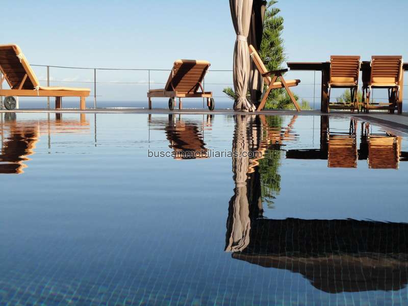 El solar dispone de zona verde con riego automático, piscina de 10x4 metros con vistas al mar y zona chill-out con barbacoa.