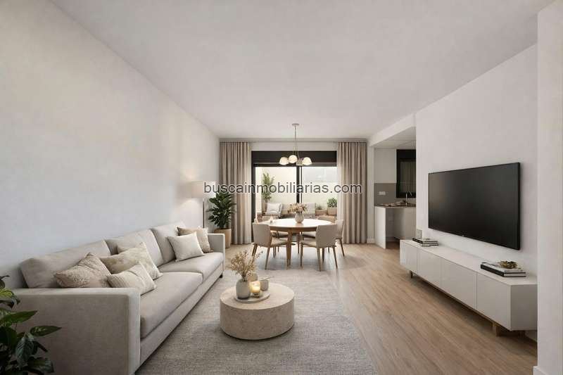 En su interior encontramos un salón-comedor luminoso con cocina abierta, amueblada con armarios altos y bajos, un espacio pensado para compartir, vivir y disfrutar sin prisas. Dispone de tres dormitorios y dos o tres baños, según tipología, lo que la convierte en una opción ideal tanto para familias como para quienes buscan una segunda residencia cómoda y funcional.