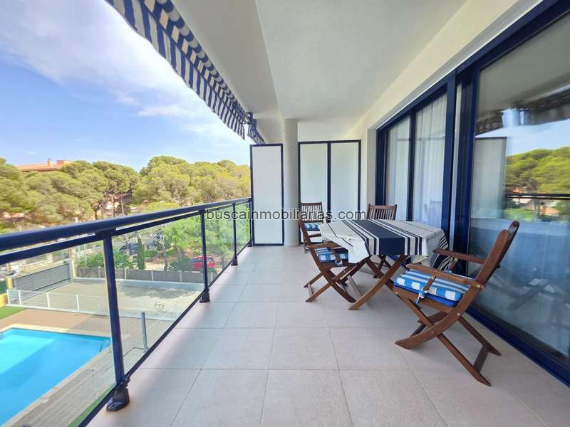 Gran piso 20m de la playa, consta de 3 habitaciones, cocina equipada con galería, salón-comedor, amplia terraza de 18m con vista a la piscina, aire acondicionado + bomba de calor por conductos, suelos de gres, muy bien conservado. Zona comunitaria ajardinada con piscina. El precio incluye plaza de parking dobley 1 trastero en el mismo edificio.