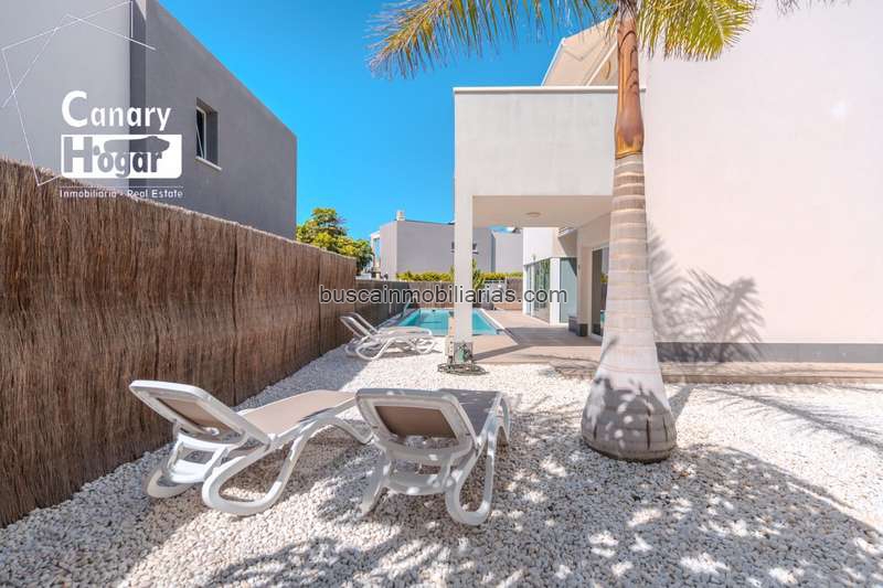 Descubre esta luminosa villa contemporánea, ubicada en la exclusiva urbanización privada y vallada Nirvana Paraíso, justo frente al centro comercial Las Rosas y a solo 10 minutos a pie de la playa de Las Galgas y del Hard Rock Hotel.