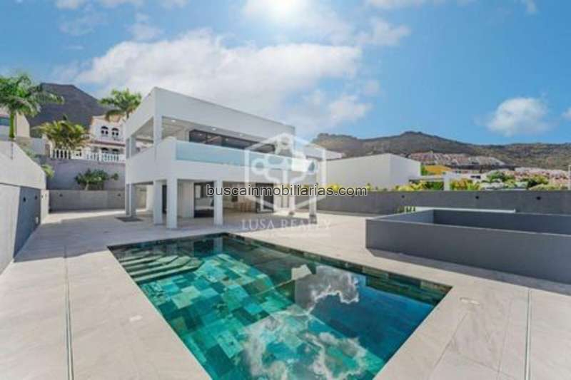 Nueva villa sin estrenar a la venta en El Madroñal, Costa Adeje. Construida sobre una parcela de 545 m2, la villa consta de 3 niveles. El nivel principal tiene una enorme salón con una cocina abierta y un baño de invitados, que sale a una gran terraza techada con vistas a la piscina, preparada para la instalación de contracorriente y climatización. Además, en el exterior se encuentra un jardín de 40 m2 y hay preparaciones para la instalación de un jacuzzi, ducha exterior y cocina exterior. Hay canalizaciones para riego en todo el perímetro. La planta alta tiene 2 dormitorios, 2 baños y una espaciosa terraza con vistas parciales al mar. La planta del sótano contiene 2 dormitorios de invitados, un amplio garage para 6 coches, una sala de máquinas de la piscina y un almacén. 391 m2 construidos y bien distribuidos. La propiedad se vende parcialmente amueblada, con cocina equipada (muebles, placa de inducción, horno, lavavajillas, microondas y nevera), cada dormitorio dispone de camas con colchones, mesitas de noche y armario, así como el sofá, mesa de comedor y 6 sillas en el salón. La villa dispone igualmente una caja fuerte empotrada oculta y aire acondicionado en el salón y en cada uno de los dormitorios. Se encuentran instaladas cámaras de seguridad, sistema de alarma, portero automático, y wifi en toda la villa. Referencia Lusa Realty: 52283. | ID: 52283