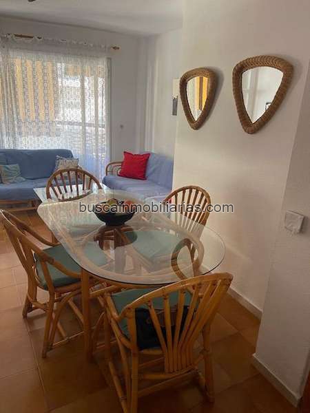 Distribuido en 2 dormitorios amplios y exteriores con armarios empotrados, 1 baño completo con bañera, cocina independiente, solana, amplio salón comedor y terraza de 12 m2. con vista lateral al mar. Complejo con piscina comunitaria, y a 10 min. de la playa.