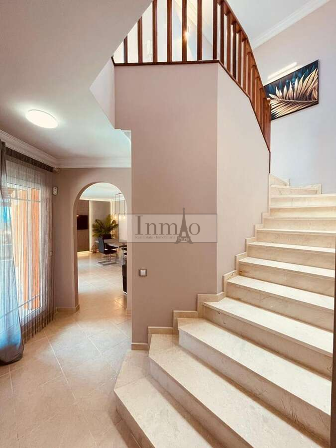 Tenemos el placer de ofrecerles este magnifico chalet ubicado en una de las zonas mas prestigiosas del sur de Tenerife, como lo es Los Cristianos, se encuentra a escasos metros de la playa conectado con todos los servicios básicos como centro medico, estación de autobuses, centros comerciales a su alrededor, bares y restaurantes. El chalet cuenta con trecientos sesenta y siete metros cuadrados distribuidos en dos plantas mas una zona de parking privado en el interior de la vivienda con espacio para dos coches, la vivienda cuenta con cuatro dormitorios con armarios empotrados, dos baños completos mas un aseo, cocina abierta al salón muy luminoso con salida a un jardín que cuenta con piscina privada y unas vistas magnificas al mar. La propiedad puede ser explotada turísticamente con una alta rentabilidad asegurada. Puedes vivir en ella disfrutando de sus comodidades y facilidades que ofrece al estar situada en Los Cristianos.