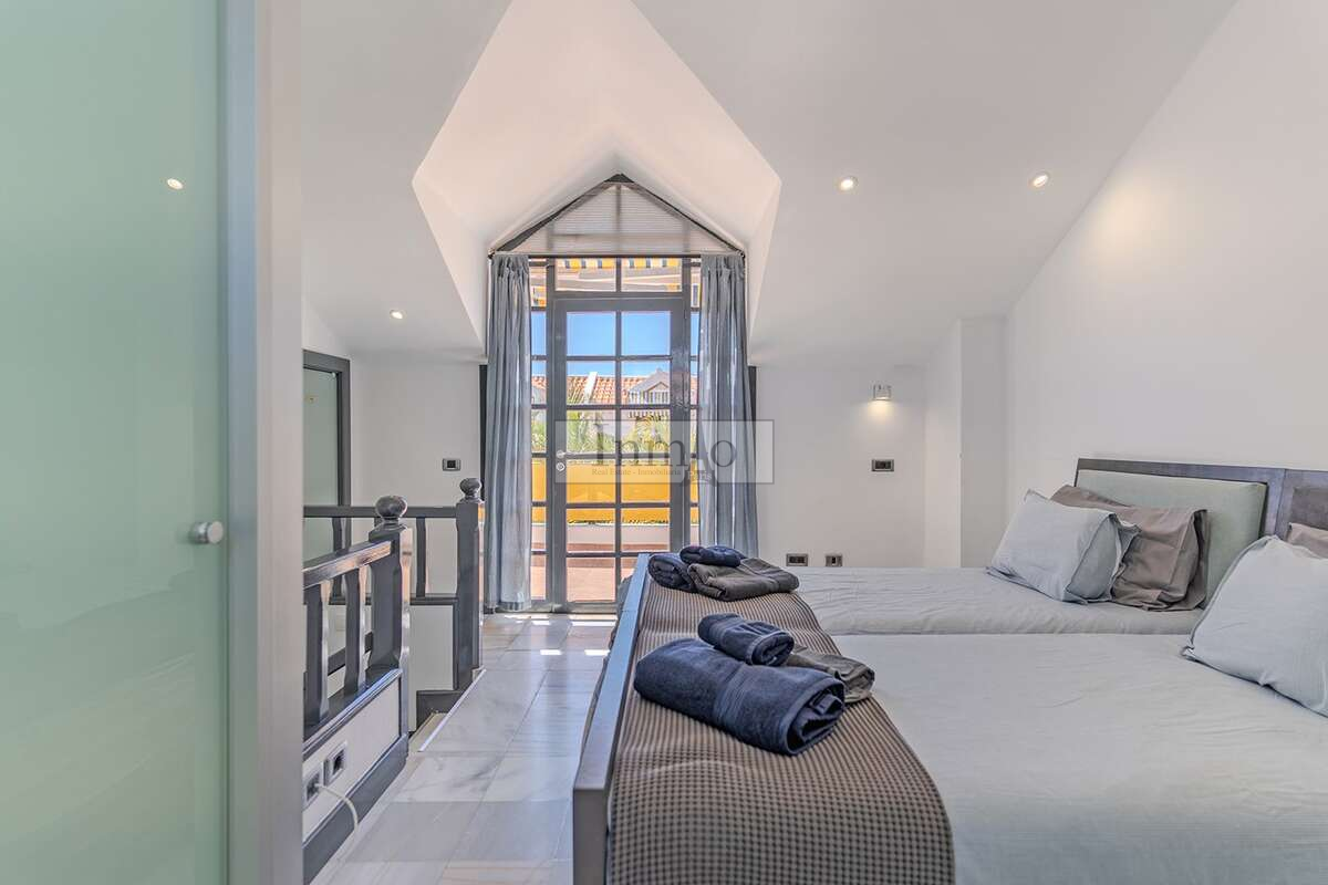 InmoParis se enorgullece en presentar esta magnífica villa situada en uno de los complejos más codiciados de Playa de las Américas, a tan solo 50 metros de la playa. Esta propiedad ofrece una combinación perfecta de confort, estilo y una ubicación privilegiada, lo que la convierte en una excelente elección tanto como residencia habitual como inversión turística.