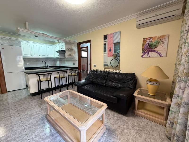 Cocina americana amueblada y equipada, con barra abierta hacia el salón-comedor, creando un espacio práctico y funcional.