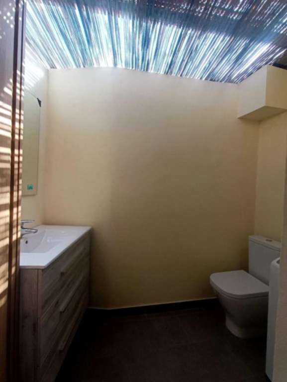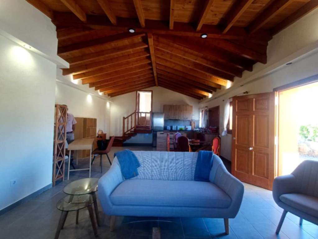 La casa cuenta con 2 habitaciones, 2 baños y un aseo, lo que la convierte en un lugar ideal para familias o parejas. El salón es acogedor y perfecto para relajarse, mientras que la terraza y el jardín ofrecen un espacio al aire libre donde disfrutar del clima canario.