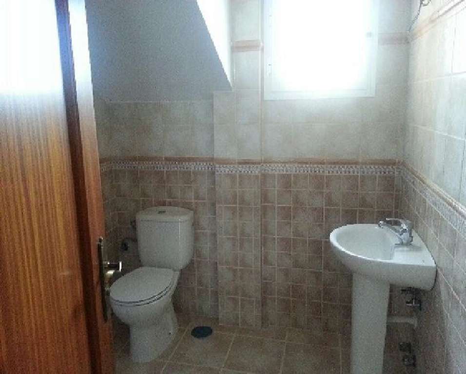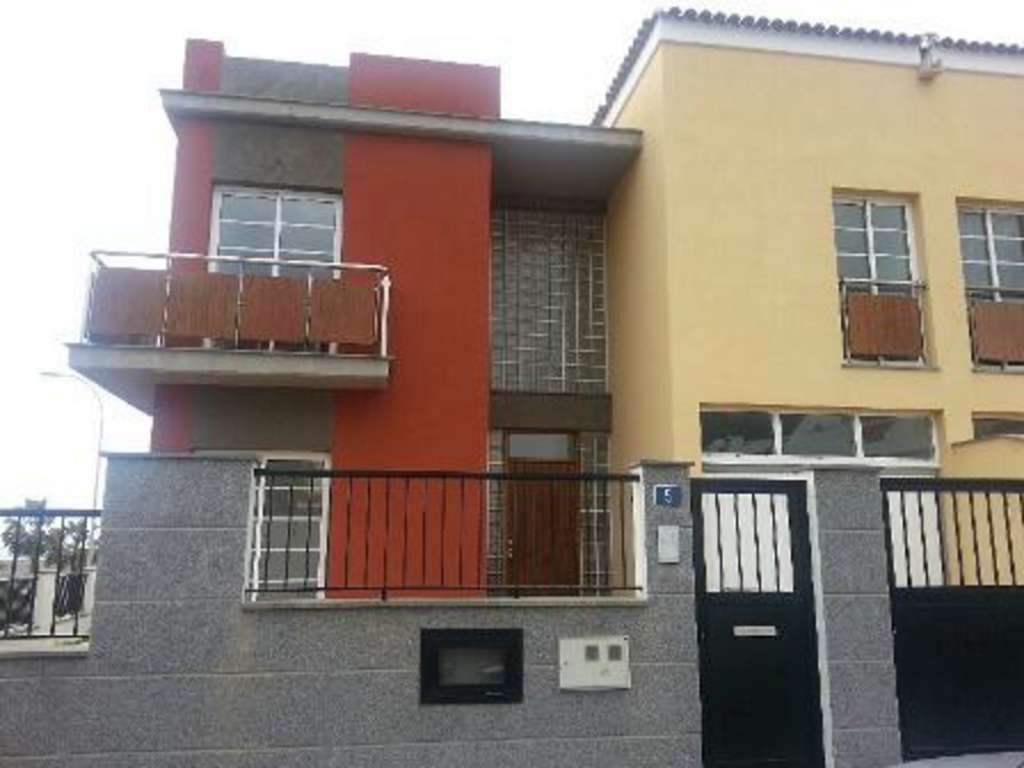 REFERENCIA: V234F8 Vivienda pareada que se desarrolla en dos plantas destinadas a vivienda comunicadas por escalera interior rematada con madera noble. La planta baja se distribuye en cinco estancias, salón, cocina no instalada comunicada con el patio posterior, solana, baño completo y garaje con acceso desde la calle principal. La planta alta se distribuye en una habitación principal con armario empotrado, balcón, aseo, habitación pequeña con armario empotrado, despacho y baño completo. Remata en cubierta en parte teja y en parte azotea transitable. Un jardín rodea la edificación.