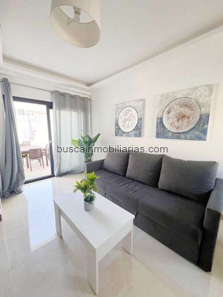 Amplio salón muy luminoso gracias al acceso directo a su acogedora terraza de uso privativo. Tiene una cocina funcional moderna y completamente equipada.