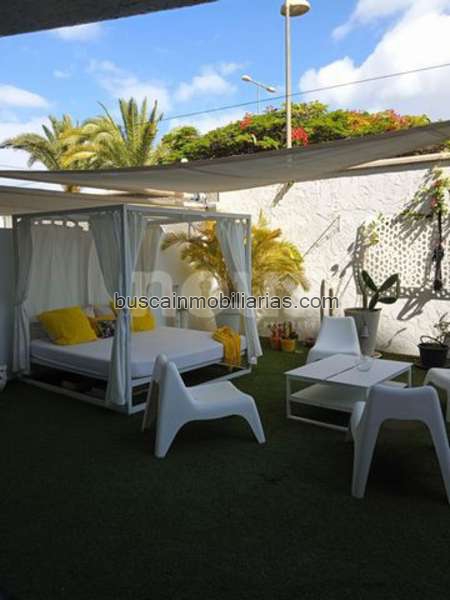 Referencia: 03841. Lujoso apartamento situado en una planta baja, dispone de una moderna cocina americana, un amplio salón con acceso a la bonita terraza junto a la piscina y además dos baños y dos dormitorios, uno de ellos con el baño “en suite”, que dan a la amplia terraza trasera privada. El apartamento tiene también fácil acceso al exterior, se vende amueblado y dispone también de aire acondicionado, plaza de garaje comunitaria y un trastero. La cuota de comunidad son 120 € mensuales. Este moderno y lujoso complejo está situado en el Palm- Mar, una tranquila zona residencial que ofrece múltiples servicios como restaurantes, boutiques, supermercados y tiendas varias.