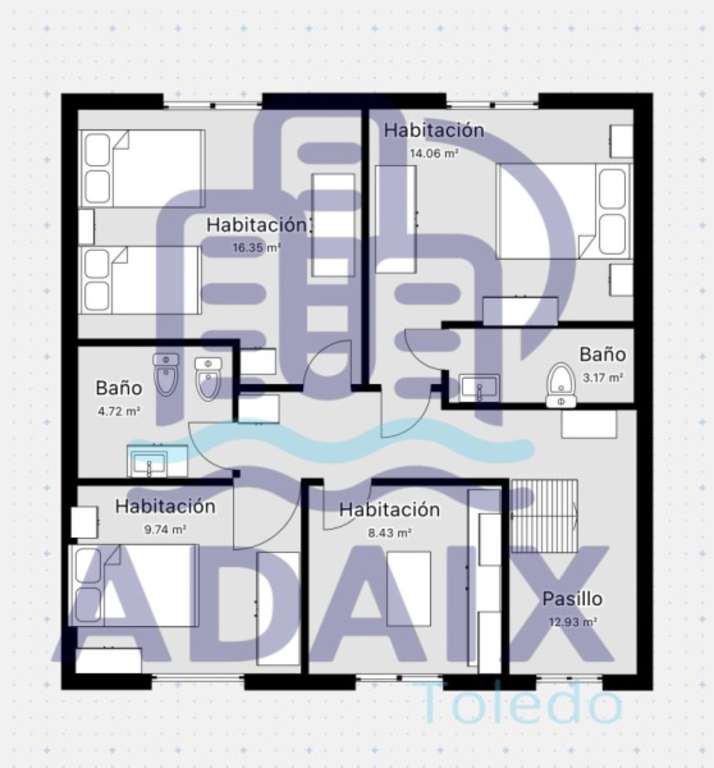 Primera planta: 4 dormitorios muy amplios y luminosos baño completo.