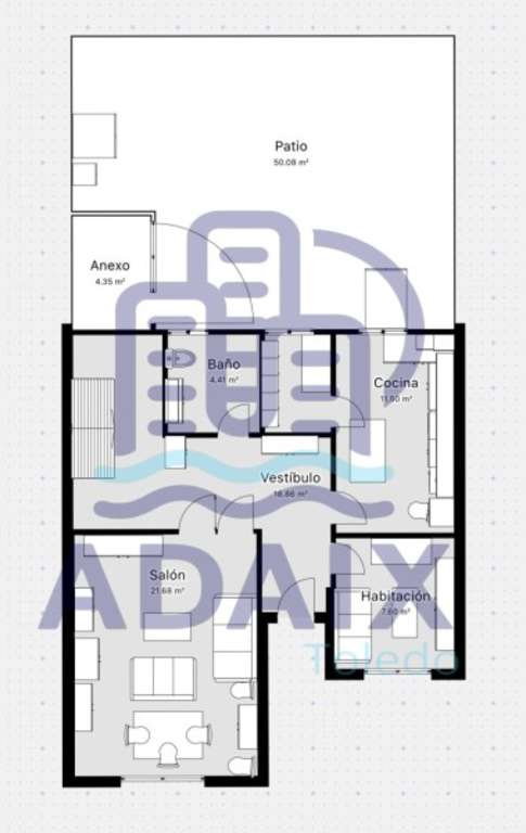 El patio trasero de 50 m² es ideal para disfrutar al aire libre, con espacio para zona chill out, barbacoa o piscina elevada.