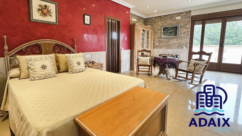 La planta superior está destinada íntegramente a una gran suite privada, concebida como un refugio independiente dentro de la vivienda. Dispone de zona de descanso, espacio de relax, un amplio baño completo y acceso a una terraza privada con vistas a la piscina y al campo de golf, ideal para comenzar el día con calma o disfrutar del atardecer.