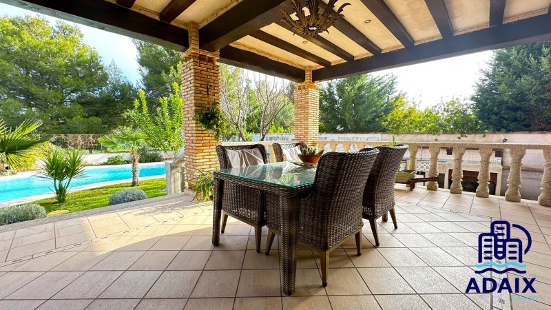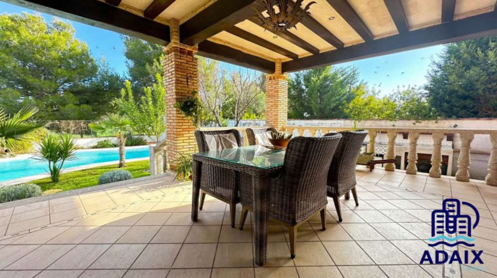 La zona de barbacoas, equipada con fregadero, cámara de bebidas y horno de leña, convierte el exterior en un espacio ideal para reuniones familiares y sociales durante todo el año.