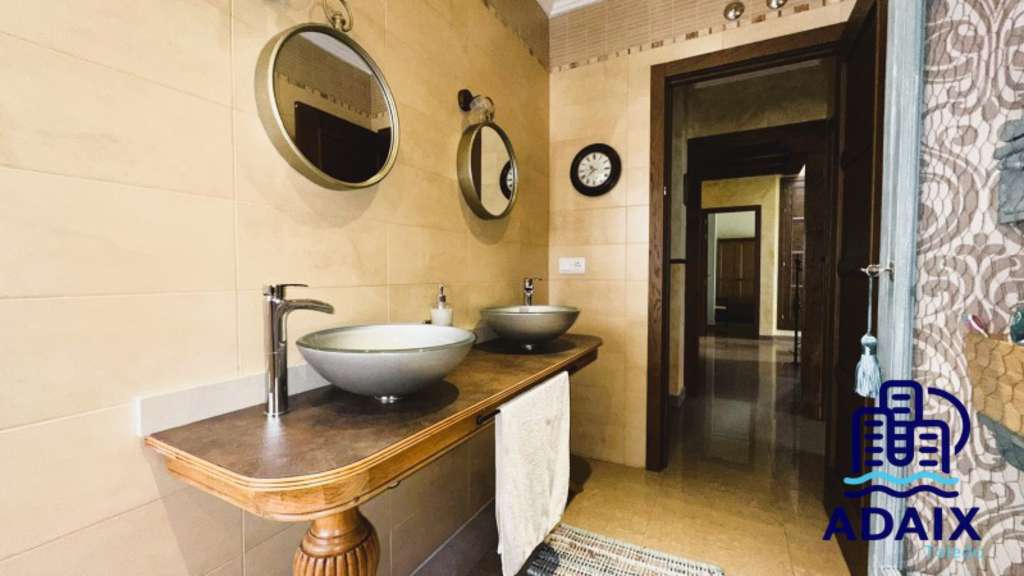 La cocina, moderna, espaciosa y completamente equipada, cuenta con zona independiente de despensa, perfecta para estancias prolongadas. En esta planta se ubican tres dormitorios dobles y dos baños, ofreciendo comodidad y funcionalidad para familia e invitados.