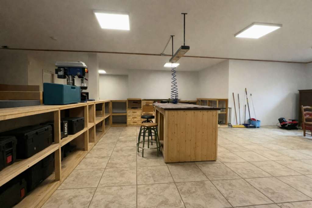 La planta sótano ofrece un garaje con capacidad para varios vehículos, zona de taller, baño, cuarto de calderas y amplias zonas de almacenaje, aportando una versatilidad perfecta para una vivienda de uso vacacional o estancias prolongadas.