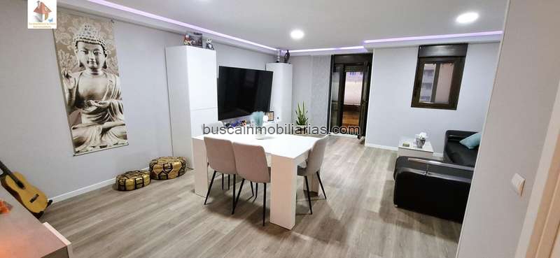 La propiedad ha sido sometida a una reforma que optimiza el espacio, destacándose por su amplia zona de salón diseñada para ofrecer confort y luminosidad. La cocina se encuentra separada del resto de la vivienda, garantizando un ambiente más funcional e independiente. Además, el suelo del salón cuenta con acabados superiores comparado al diseño clásico en tarima flotante utilizado en las habitaciones; esta característica resalta no solo estéticamente sino también contribuye a crear diferentes atmósferas dentro del hogar.