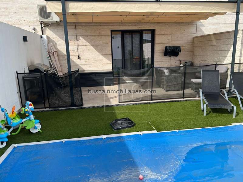 Entre los extras destacados se incluye un parking exclusivo que garantiza tu comodidad al llegar a casa; además podrás relajarte en su piscina privada o aprovechar las zonas infantiles ideales si tienes pequeños en casa. El chalet también cuenta con terraza.