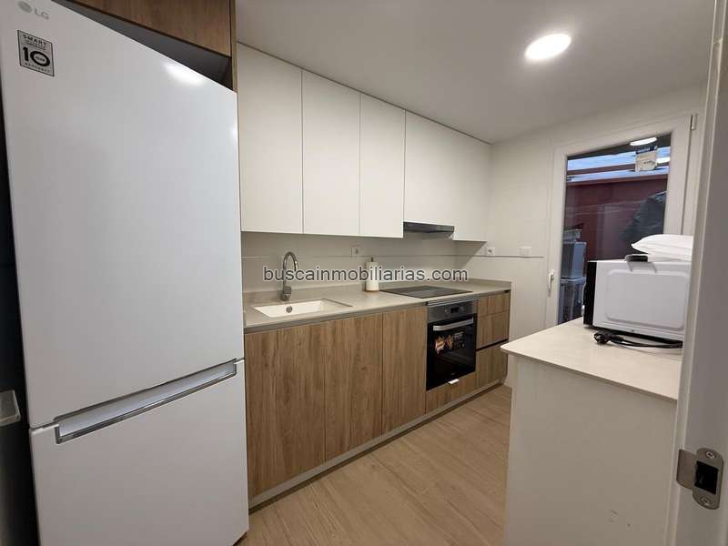 Se distribuye en un salón amplio y luminoso, una cocina independiente completamente equipada con mobiliario moderno y electrodomésticos integrados, dos dormitorios con armarios empotrados y un baño completo con plato de ducha y mampara.