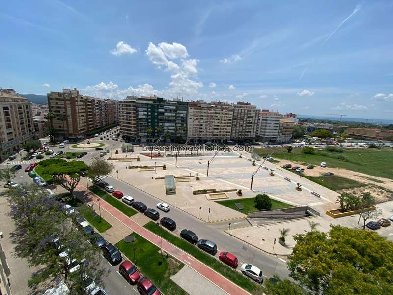 Está compuesta de un amplio comedor salón con salida a balcón con vistas despejadas a la Plaza Generalitat; 3 habitaciones dobles con armarios empotrados forrados y vestidos, 2 baños completos y cocina con una amplia galería.