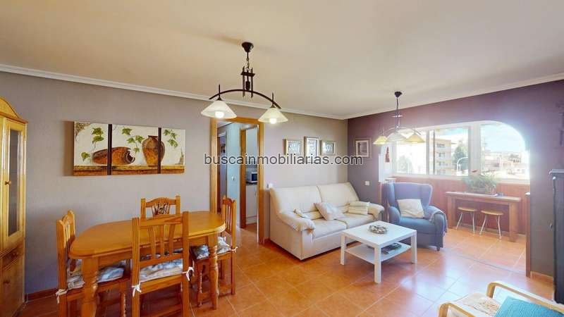 Amplio salón comedor, con despensa, terraza acristalada orientada al norte, con aire acondicionado, cocina independiente, baño completo amplio con bañera, y dos dormitorios con armarios empotrados.