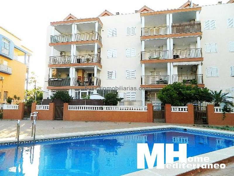 Os presentamos este apartamento en el centro de la playa con todos los servicios a mano. Nada más entrar en el apartamento a su izquierda esta la cocina independiente, a través del pasillo llegamos al comedor amplio con salida a terraza de 10 metros, perfecta para disfrutar de las noches de verano. A la derecha tiene las habitaciones, las dos con armarios empotrados, una con cama doble de matrimonio y otra con dos camas sencillas, tiene un baño completo con plato de ducha entre las habitaciones en el centro de la vivienda. Vivienda con doble orientación este/oeste. Aire acondicionado. Plaza de Garaje. Piscina y zonas comunes. WIFI incluida.