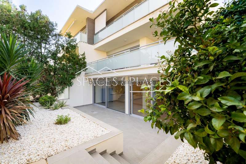 Planta principal: cocina equipada con electrodomésticos de alta gama, salón-comedor luminoso y dos terrazas exteriores.