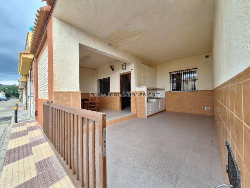 - Terraza delantera ideal para disfrutar del aire libre, equipada con zona de mesa y sillas y fregador, perfecta para preparar una paella y compartir momentos con familia o amigos