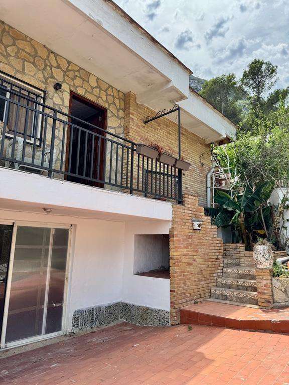 PRECIO VENTA 299.000 € ~CHALET en Gandía ~Con 330 m2, 1980 año de construcción 140 m 2 cada de dos plantas. ~Descripción de la casa~Distribución y espacios~•Primera planta: salón, dormitorio, cocina, baño y despacho.~•Segunda planta: amplio salón con chimenea, tres dormitorios, cocina y baño con bañera.~Comodidades adicionales~•Aparcamiento cubierto~•Piscina privada~•Varias terrazas para relajarse~•Jardín cuidado con árboles frutales: plátano, higuera y granado~