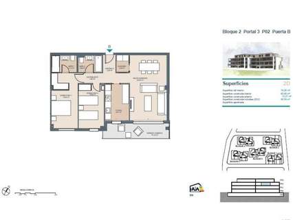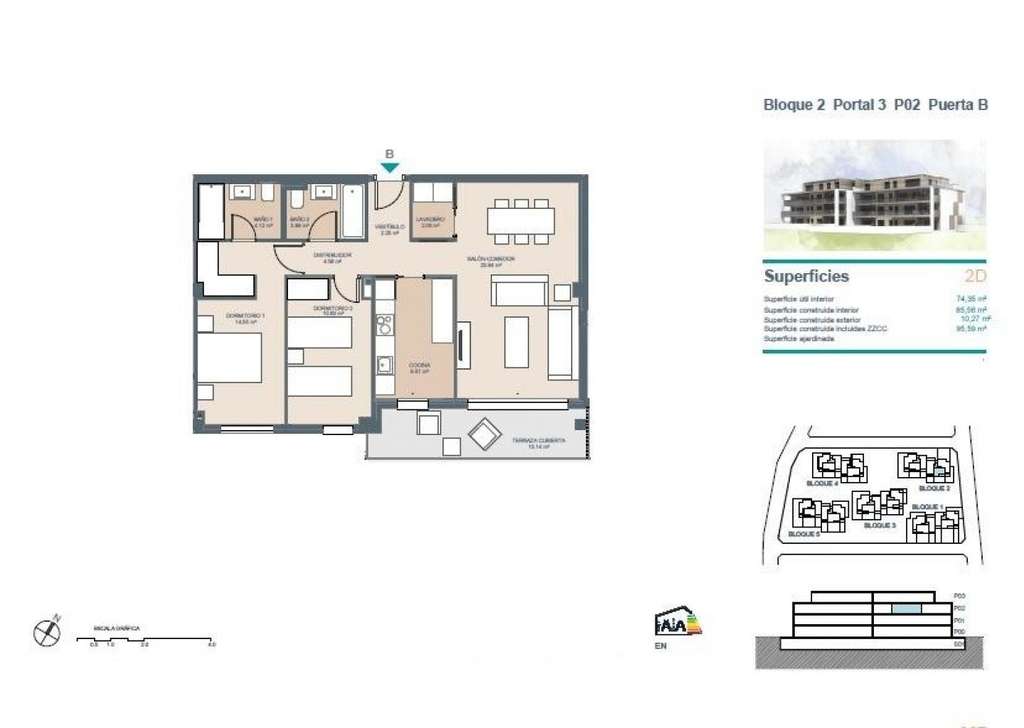 Residencial de obra nueva compuesto por 5 edificios con 20 viviendas de 2, 3 y 4 dormitorios, 2 baños, cocina americana con amplio salón, armarios empotrados, terraza.