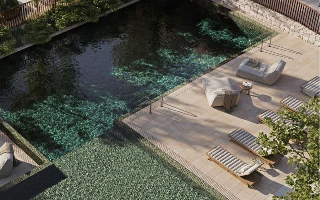 Residencial de obra nueva de 17 adosados con zona común ajardinada y piscina cerca de Valencia en Godella.