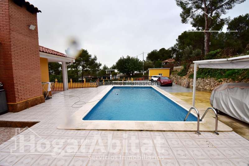 ¡Ven a disfrutar de la auténtica calidad de vida! Gran chalet para vivir en familia, luminosa y acogedora, en una ubicación inmejorable y con vistas despejadas ¡Ven a verlo en persona! Chalet rustico, de una sola planta cuenta con cuatro dormitorios y dos de ellos dobles, dos baños completos, amplia cocina independiente equipada y salón-comedor con chimenea y con salida a un porche cubierto con vistas a la montaña. En el exterior encontrarás una parcela de 1619 m2, cuenta con una piscina privada, paellero cubierto, baño completo, trastero, garaje cerrado y zona de aparcamiento para varios vehículos, terraza, solarium y zonas ajardinadas. Todo exterior y muy luminoso con mucha ventilación cruzada. Dispone de aire acondicionado, calefacción, ventanas de aluminio, puertas de madera y suelo de terrazo. Vivienda está vallado con alarma situada en una Urbanización de Godelleta, a un paso de todos los servicios. Si lo que quieres es vivir en una zona tranquila y alejada de los ruidos de la ciudad ¡No te lo pierdas y ven a verlo!