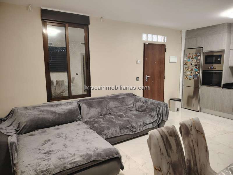 Se distribuye en un amplio salón-comedor con cocina americana, una habitación doble con baño en suite, dos dormitorios individuales y un segundo baño completo. Todos los dormitorios disponen de armarios empotrados y la vivienda está equipada con aire acondicionado por conductos. En el patio se ha habilitado una zona para el termo eléctrico, lavadora y secadora, además de contar con una práctica barbacoa.