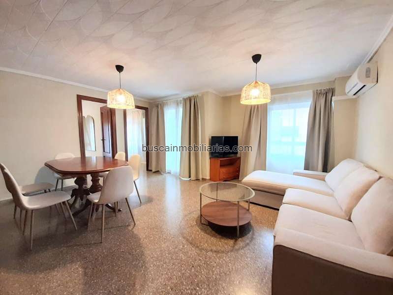Se distribuye en: Entrada-recibidor, un baño reformado de diseño a estrenar completo con bidé y ducha, cocina independiente actualizada completamente equipada (encimera de gas natural de 4 fuegos, horno, extractor de humos, lavadora, nevera y microondas), pasillo con armario empotrado de una puerta, amplio comedor con acceso a balcón-terraza acristalada, 3 habitaciones 2 de ellas dobles y una individual, desde la segunda habitación se accede a un balcón.