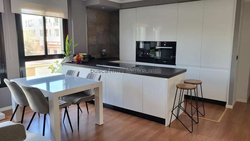 Renovada con electrodomésticos de alta gama: nevera, lavadora y lavavajillas integrados Electrolux, campana telescópica Pando, placa de inducción Franke y microondas y horno Bosch gama superior. Encimera porcelánica de alta resistencia y mobiliario con gran capacidad de almacenaje.