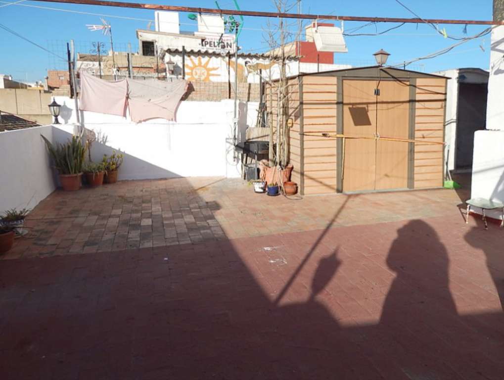 REFERENCIA: F50B Adaix Albal vende estupenda casa esquinera que da a dos calles con una superficie de 86 mt. por planta. La vivienda consta de planta baja, primer piso y segundo piso donde esta la terraza. En la planta baja está compuesta por recibidor, baño con plato de ducha, salóncomedor on estufa de leña, cocina completamente amueblada con salida a una pequeña galería comunicada con la puerta de acceso al garage. En la primera planta tenemos 4 habitaciones, una de ellas con salida a un balcón, baño completo con bañera de hidromasaje y acceso por escalera a la terraza. Se han respetado las vigas de madera en la planta baja. Las ventanas son de aluminio blanco, de climalit en planta baja. El vado se paga 47.€ al año. La puerta de entrada a la vivienda es blindada. Los suelos de la vivienda son de gres.